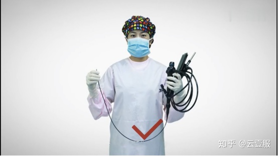 打开去离子水,首先用软布清洗软镜外表面,用去离子水清洗管腔内部,直到将管腔内部清洗干净,冲洗后排空管腔。用无水酒精棉签擦拭镜头,一手扶住镜头。