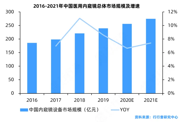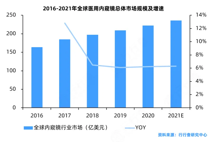 全球医用内窥镜市场规模超过220亿美元,且近三年来行业保持6%左右的市场增长。我国内窥镜微创医疗器械产品技术开展时间相对较短,随着医疗技术的进步,已逐渐从最初的完全依赖进口、模仿改制向学习创新、深度合作方向发展。通过技术引进和自主研发,国产企业医用内窥镜产品质量与国际先进企业的差距正在缩小。目前,我国医用内窥镜已摆脱单纯依赖进口的局面,国产内窥镜也实现了出口,并保持高速增长势头。但行业的整体技术水平及产业化进程仍落后于发达国家,内窥镜行业在我国尚属于新兴行业。