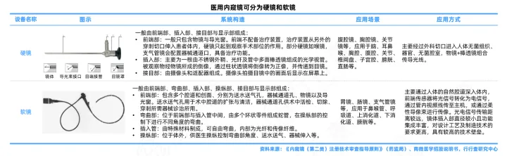 •软管式内窥镜:可以自由弯曲,通过人体自然腔道进入体内,镜体较长同时具有一定柔性,光电信号传输距离较远,镜体插入部直径较小且功能集成复杂,对设计工艺及制造技术的要求更高,具有较高的技术壁垒,主要包括胃镜、肠镜、支气管镜等。