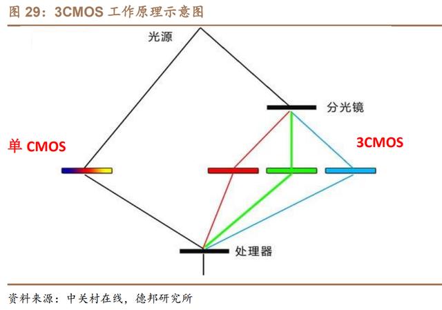 普通的 CMOS 传感器只有一片感光芯片,对物景的处理同时完成,采用 3 晶 片的硬镜首先用分光棱镜把图像的 R/G/B 通道在光学上分离,再采用 3 个 CMOS 传感器分别成像后再融合,图像更清晰,色彩更丰富更逼真,还原度更高。 国内迈瑞 HD3、开立的 SV-M2K30、SV-M4K30 相继采用三晶片 CMOS,相 比进口厂商,率先在同一分辨率水平上提升图像的清晰度,我们认为以 CMOS 为 弯道的赛点,国内内镜厂商或将以更快的姿态缩小与进口的差距,甚至在某些方 面实现更快的创新突破。