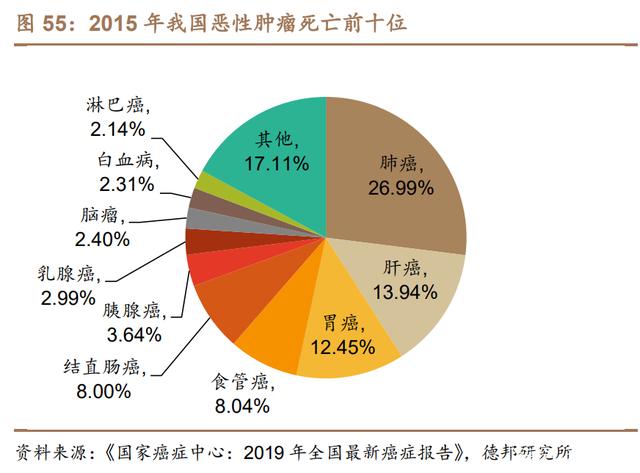 恶性肿瘤高发,消化道癌症高居榜首。根据国家癌症中心数据显示,我国 2015 年新增消化道癌症人数为 103.62 万,占新增恶性肿瘤人数的 26.37%。消化道癌 症在所有癌症中属于发病及死亡前列,前十名中有三项是消化道癌症(胃癌、结/直 肠癌、食管癌),消化道恶性肿瘤死亡人数占比居前五位。