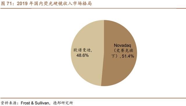 国内荧光内镜整体玩家稀少,国产厂商有望依托荧光技术创新追赶。荧光内 镜受限于荧光核心光学技术水平不足及中国市场产品推广时间较晚等因素,目前 我国荧光硬镜市场参与者较少,海外龙头受限于国内注册因素,目前主要玩家以 Novadaq(史赛克旗下,收入市占率 51.4%)和欧谱曼迪(市占 48.6%)为主。 国内荧光硬镜应用规模还小,除欧谱曼迪外,2020 年后国内荧光系统加速获批,处于临床打磨阶段,国内具备荧光内窥镜 ODM 全球竞争优势的海泰新光于 2022 初获批 4K 荧光摄像系统,我们认为荧光蓝海格局中,有望沉淀出国产荧光龙头品 牌。
