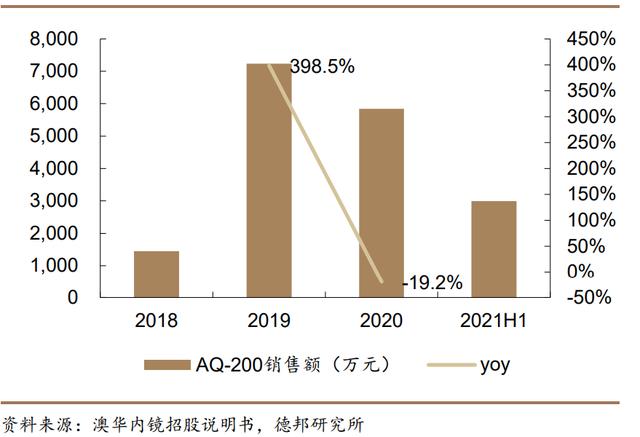 AQ-200 高性价比国产软镜明星,高速放量。AQ-200 作为公司面向中高端市 场的产品,性能比肩国外巨头,自 2018 年推出市场后销售额快速攀升,20 年受 疫情影响终端客户对于 AQ-200 的采购意愿有所降低,预计随着疫情后常规诊疗 的正常开展,中高端市场对于 AQ-200 的需求将快速恢复。从经销、代销渠道看, 2017 年起公司借助代销模式开始在新兴市场探索,主推 AQ-200 等中高端产品, 2020 年代销模式中 AQ200 收入占比超过 70%。同时代销对品牌的推广也逐步带 动境外经销对 AQ-200 的销售增长。